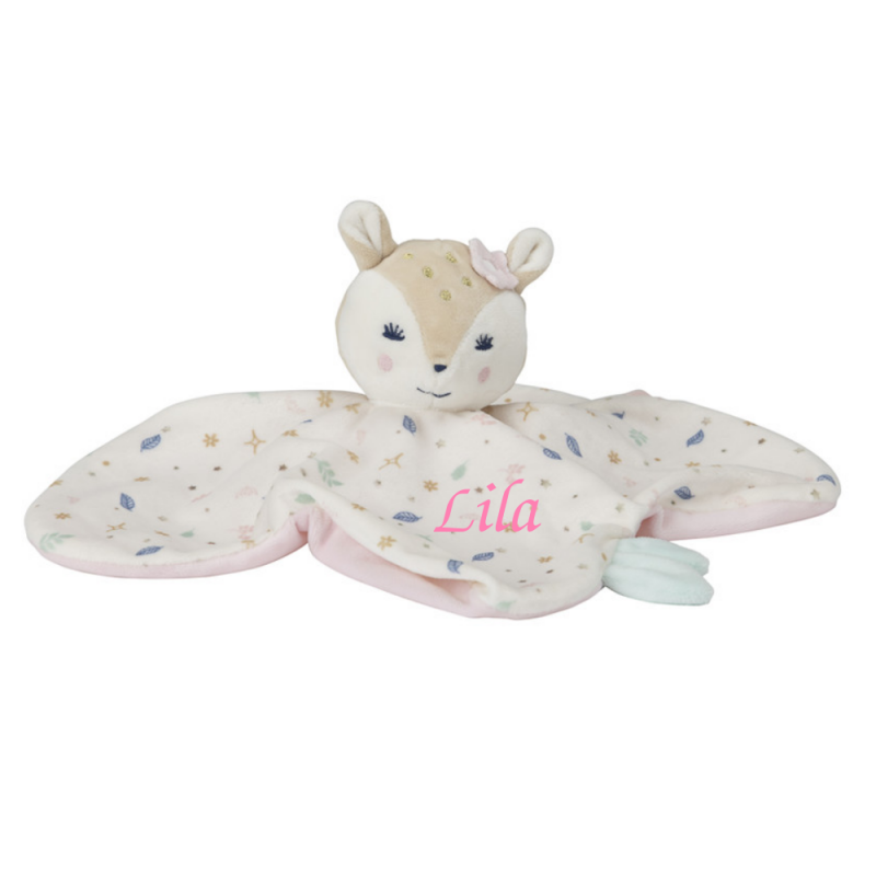 Doudou biche tout doux de 25 cm, à personnaliser avec une jolie broderie.
