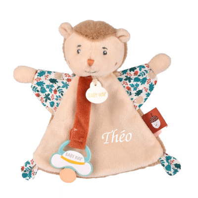 Doudou avec attache-sucette Simon le hérisson tout doux à personnaliser avec une jolie broderie. 15 cm.
