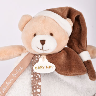 Baby'Nat - Je brille dans la nuit - Peluche avec doudou ours marron blanc 25 cm