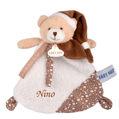 A personnaliser avec une jolie broderie. Attention les poils du doudou étant longs, une broderie en calgary ( écriture fine) ou avec un prénom long peuvent masquer cette dernière.