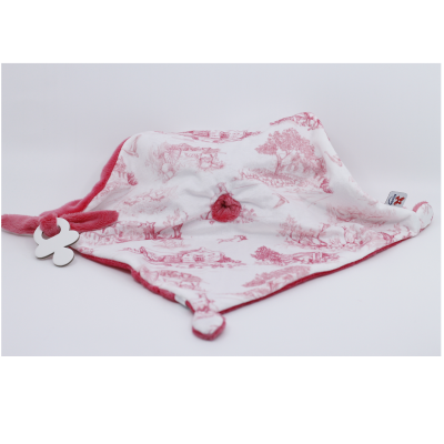 Nicotoy - Doudou plat ours rose framboise Toile de Jouy 25 cm