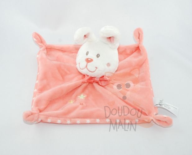 Tex doudou lapin plat carré mouchoir rose orange étoile blanc noeud