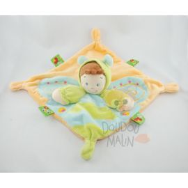 Nicotoy Doudou Poupée Déguisée En Papillon Plat Carré Jaune Vert Bleu Etiquette Abeille Coccinelle