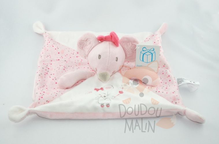 Doudou et compagnie Mon tout petit souris blanc rose mouchoir
