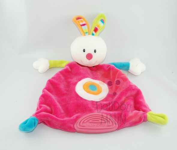 Babysun doudou lapin rose fuschia bleu vert blanc rond