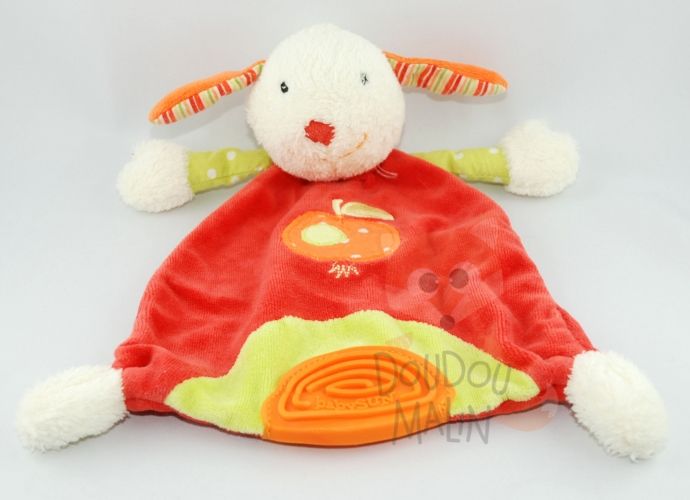 Babysun Doudou Chien Plat Blanc Rouge Bleu Vert Orange Cocard
